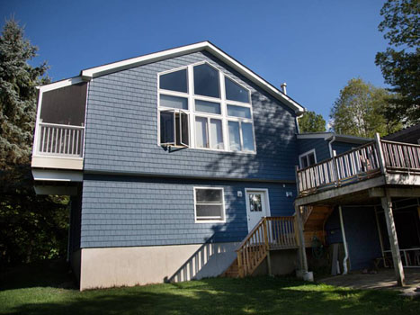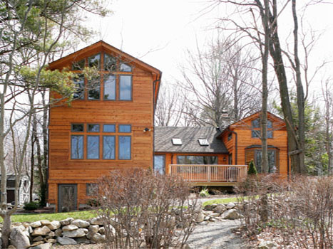 The challenge: create an addition almost twice the size of the original small cabin, make the totality a unified structure, do so with the owners largely absent, and work with a very tight budget. The result: success on each and every count. The background: our extended family owned a vacation house in Highland Lakes NJ for about 25 years. As the family grew from 4 adults with 9 kids (total) to 18 adults and 10 kids, the need to expand was clear. We found Jim Schriner's Highland Architectural Design firm simply by walking around the area and seeing his designs. We saw in his work a unique ability to merge the new with the existing. He began by asking what our needs were - how we used the house, how often we were there, what the priorities were. He delivered some preliminary ideas for the owners (who are spread all over the US) to consider. He refined the initial ideas and after careful consideration as to the site conditions and potentials, came up with a proposal that was 180 degrees away from what we had thought we wanted, but which turned out to be a much better and effective idea than any we had considered among ourselves. Once the final plans were agreed upon, Jim helped us find a contractor to do the work. When estimates came in, we were delighted to find out that his design was affordable and within our budget. Jim also knew how to get our plans approved expeditiously by the Vernon authorities. Since none of us live really close to the house, we were not available to be present to oversee the work, except upon occasion. Jim visited the site frequently, and in effect acted as site manager for us. Doing construction is always difficult, but doing it long-distance is even more difficult. Jim was our salvation. The outcome: 5 years later, we remain thrilled with the work. As the family continues to grow, we can be assured that our vacation house will remain a gathering place for family get-togethers and reunions for years to come. And since some of the original owners are retired, we're spending more time than ever there. We would recommend him to anyone!